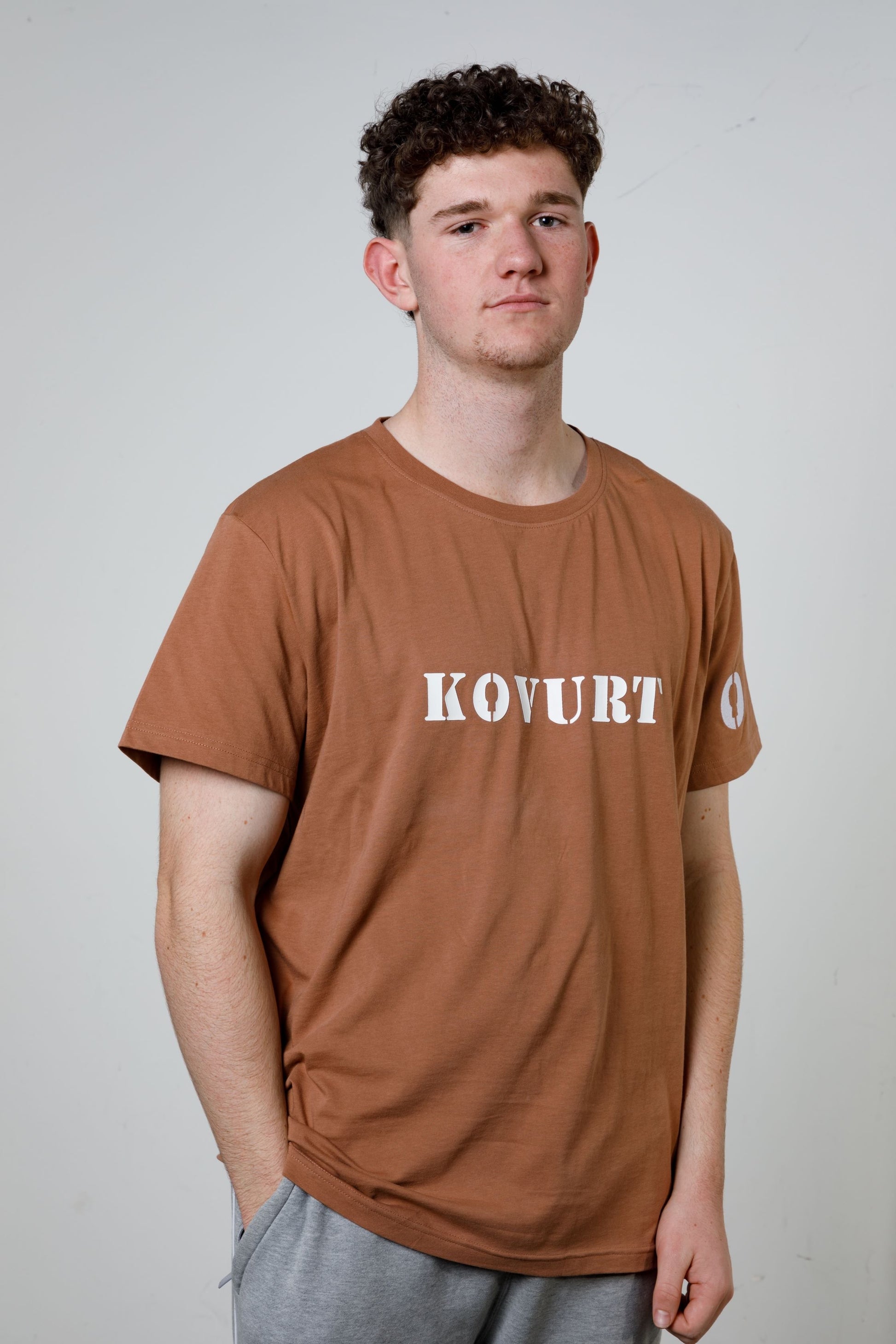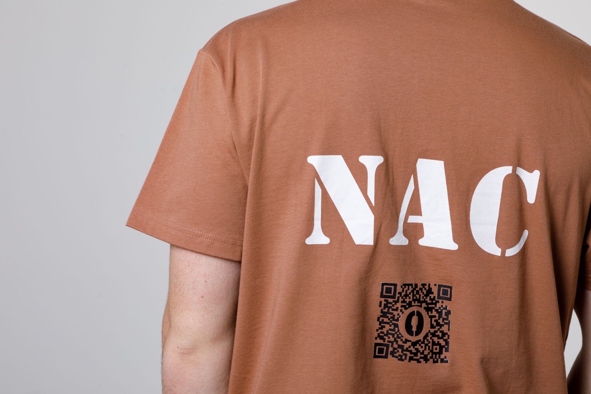 Experience the boldness of our Mocha Mousse Tee, stamped with big NAC on the back. Whether you prefer a low-key vibe or seek a romantic escapade, this form-fitting Tee is the ultimate pick. Use the QR code to signal your desire for some Netflix and Chill time. Its lightweight and soft fabric makes it effortless to strip off. With a daring KOVURT boldly printed on the front, this Tee is a must-have for the risk-takers.